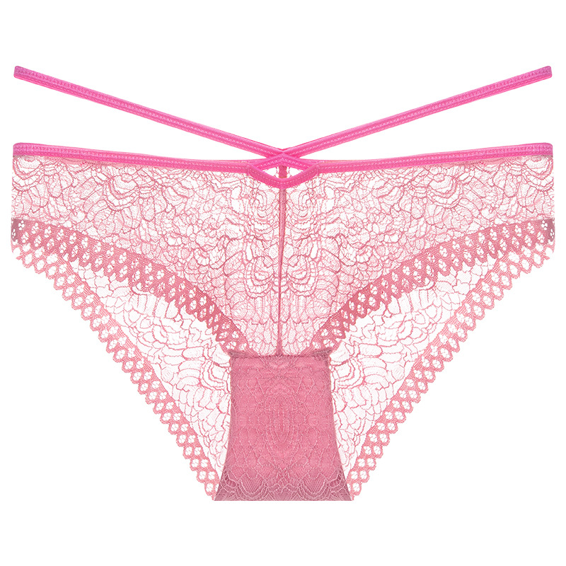 MAYA Pink See-through Lace Cross Strap High Elasticity Underwear